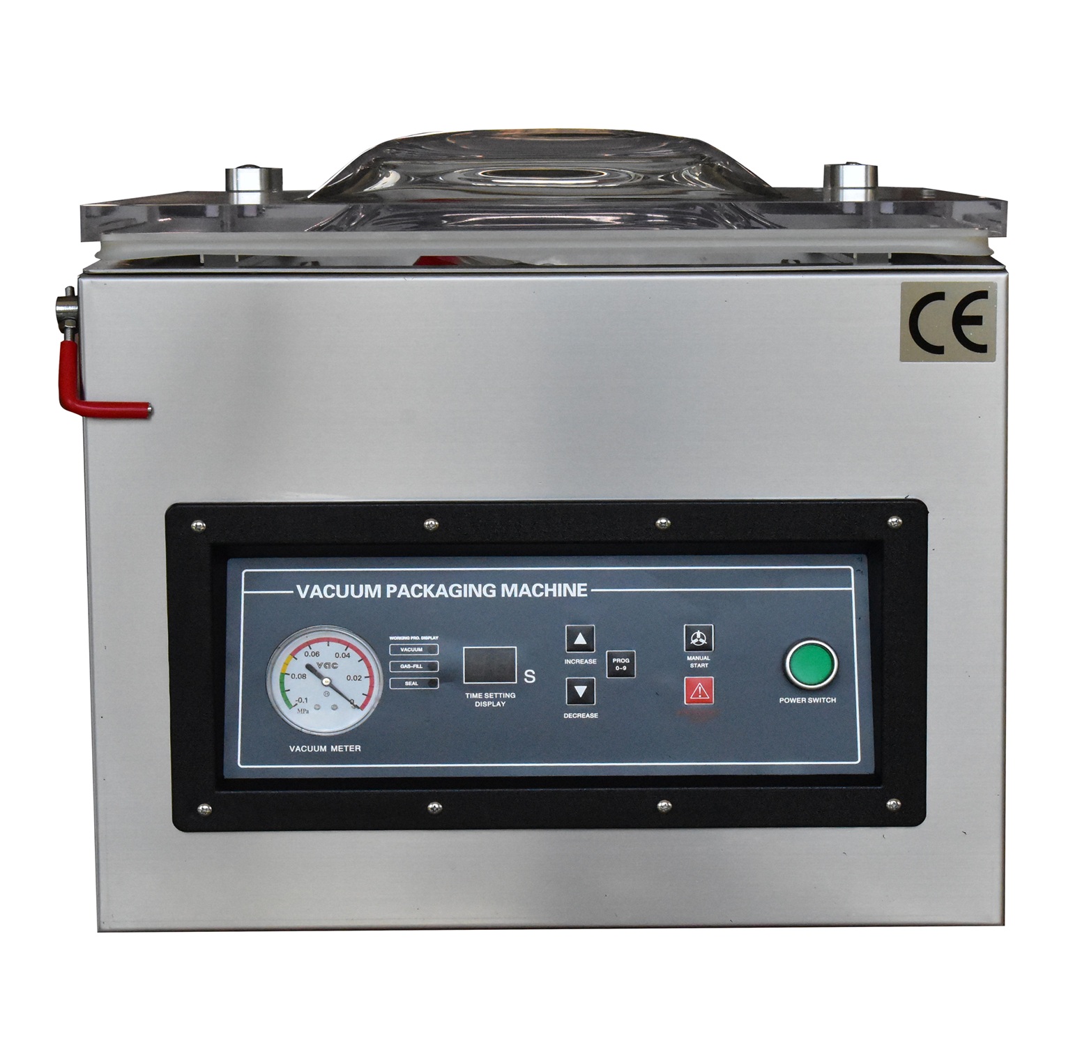 The DOZE400TB commercial vacuum sealer is a precision-engineered industrial vacuum packaging solution designed to extend product shelf life while enhancing packaging efficiency in commercial and industrial operations. This tabletop vacuum sealer is tailored for enterprises involved in food processing, pharmaceuticals, electronics, and other sectors requiring airtight packaging to preserve product integrity and quality. With a robust vacuum pump rated at 20 m³/h and a double sealing bar sized at 400 mm by 8 mm, this machine facilitates rapid air evacuation and high-strength sealing. The vacuum chamber dimensions of 430 mm by 430 mm by 75 mm provide sufficient volume for packaging various product sizes. The machine’s overall dimensions measure approximately 560 mm by 500 mm by 460 mm, accommodating flexible placement within production areas.