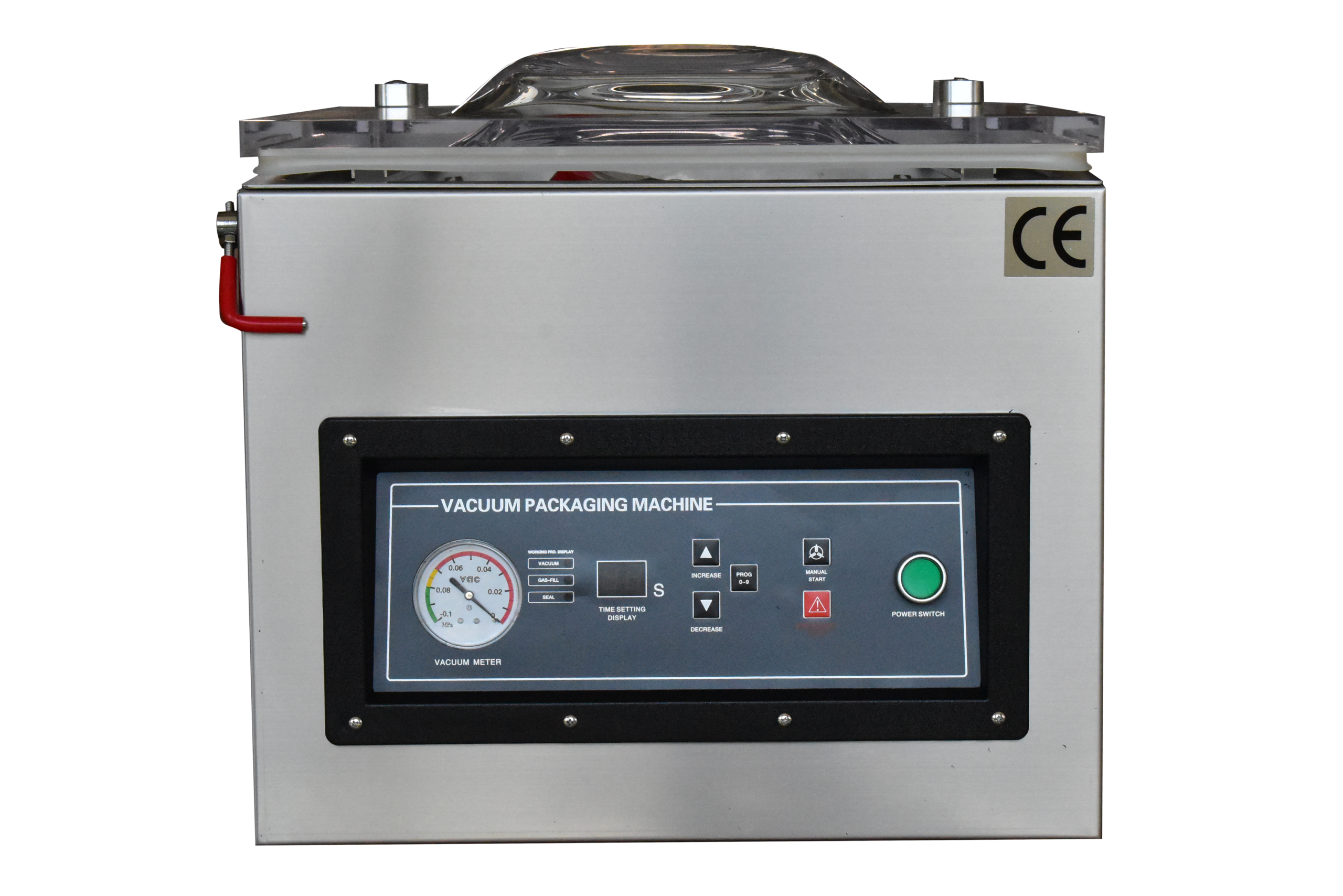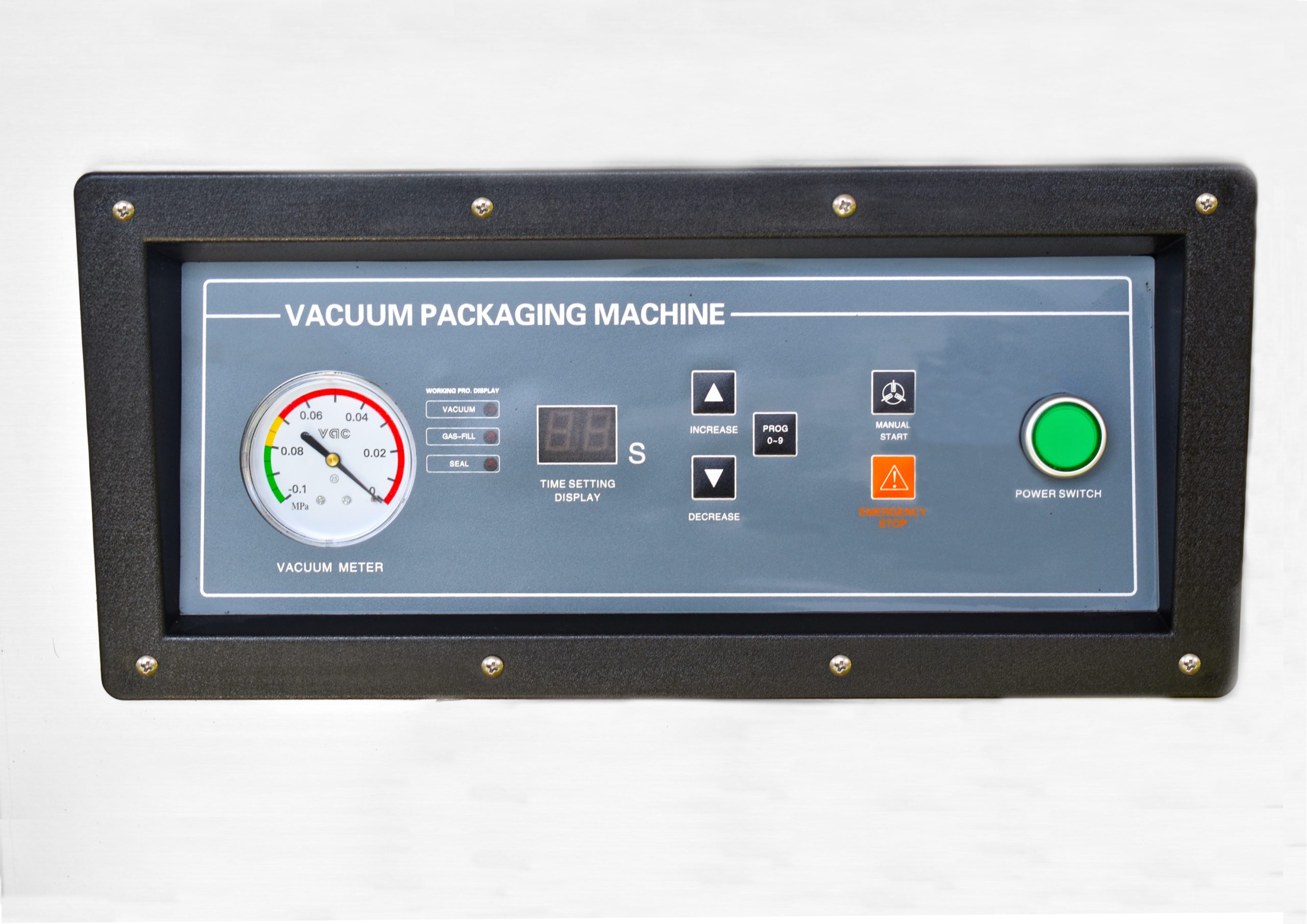 Equipped with a programmable control panel, the DOZE400TB supports up to 10 custom programs for vacuum time, sealing, cooling, and gas flush settings, making it adaptable to multiple packaging requirements. Its gas flush capability allows nitrogen or protective gas filling, essential for preserving oxygen-sensitive products. The machine is compatible with a variety of packaging materials, including barrier films, laminated aluminum-foil bags, and soft packing films, ensuring versatility across diverse packaging applications. Designed with operator safety in mind, it incorporates an emergency stop button and a grounded electrical system to ensure safe operation. The DOZE400TB commercial vacuum sealer thus provides a reliable and cost-effective packaging option that maximizes shelf-life extension and reduces waste, suitable for continuous operation in demanding industrial environments.