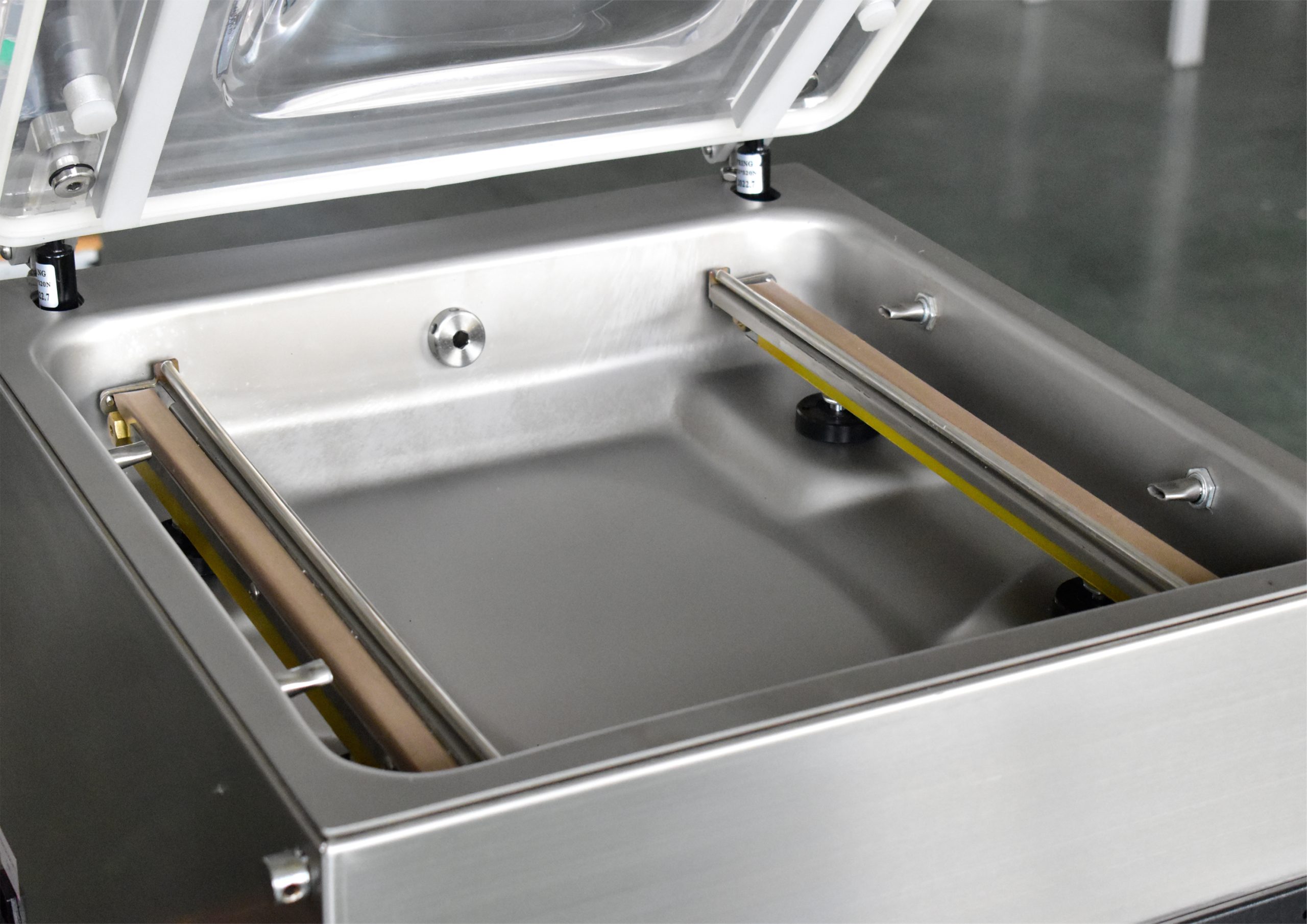 Designed with a compact, tabletop footprint, the DOZE400TB fits easily into production lines without demanding excessive space. The vacuum chamber size (430 x 430 x 75 mm) accommodates a broad range of product sizes, and its double sealing bars are compatible with numerous bag widths and materials. Constructed with robust stainless steel and transparent acrylic lid, the machine offers durability and easy visual monitoring during the sealing process. This design allows compatibility with complex film laminates and foil bags, providing versatility across packaging applications.