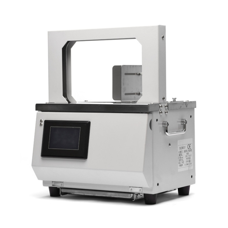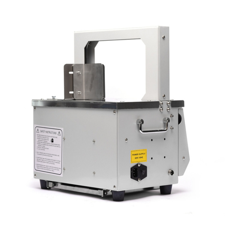 ECOBAND-S automatische banderolleermachine voor OPP-tape en papieren tape wordt veel gebruikt voor het voorzichtig omsnoeren van zachte en gevoelige items, bijv.: bankbiljetten, etiketten, enveloppen, cd’s, medicijnen, visitekaartjes, luxe prints, enz. ECOBAND-S automatische OPP banderolleermachine heeft een hoge inpaksnelheid (26 banden/min) en instelbare bindkracht tot 5 kg. De functie van deze machine is om plastic OPP-tape of papieren tape te gebruiken om het product of de producten samen te rasteren, en de machine is geschikt om te werken met een automatische snij- of verpakkingsmachine. In plaats van een rubberen band te gebruiken om de producten te binden, duurt het slechts 1,5 seconde om de producten door middel van OPP-tape of papieren tape te bundelen voor eenvoudig verpakken. De boogmaat van de banderolleermachine is B220xH170mm en de machine weegt 18kg.