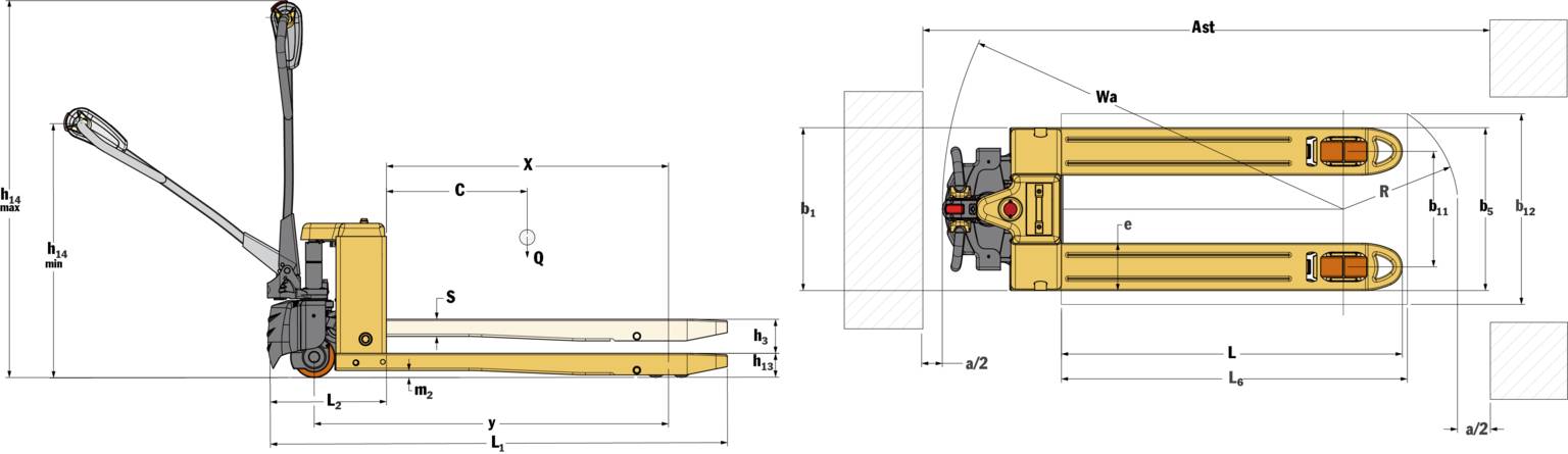 Electric pallet jack XT2 is characterized by its compact body, rendering it applicable to confined spaces where traditional hand pallet trucks are deployed. Furthermore, our electric pallet jack boasts easy maintenance, with most parts requiring similar attention as a conventional hand pallet truck.