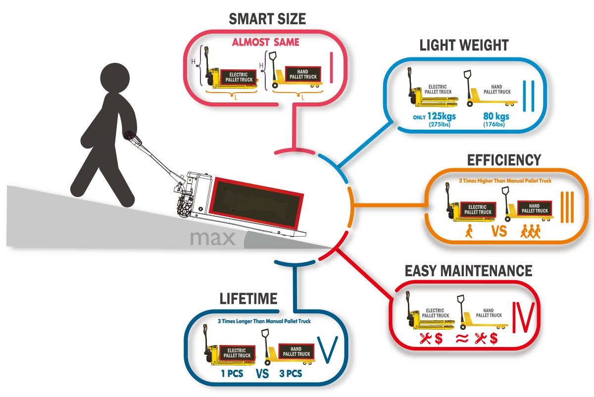 Electric pallet jacks have stood as indispensable pieces of machinery in companies worldwide. With the increasing prevalence of larger loads and more frequent movements, there has arisen a necessity for innovative methods to alleviate the physical strain on workers. In response to ongoing technological advancements, the utilization of electric pallet trucks has gained prominence in recent times, offering a solution to mitigate the physical burden on workers. The electric pallet jack facilitates the efficient transport of bulky goods, concurrently reducing the risk of injuries during handling.