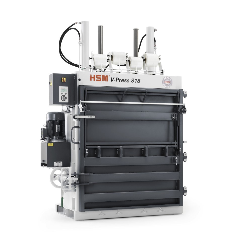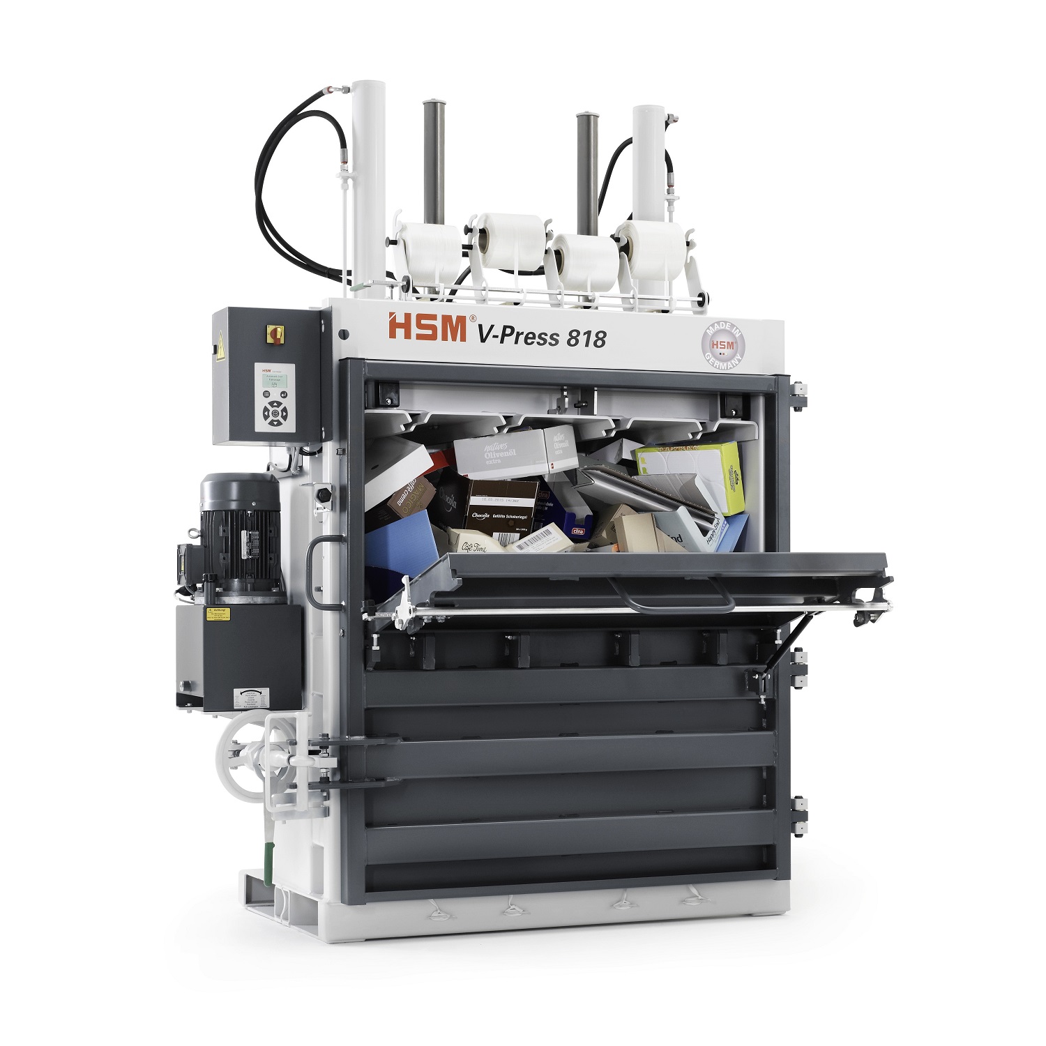 Verminder uw afvalvolume en bereid afval voor op verder transport of opslag: met de automatische HSM balen machine V-Press 818 – bestel nu hier in onze winkel.