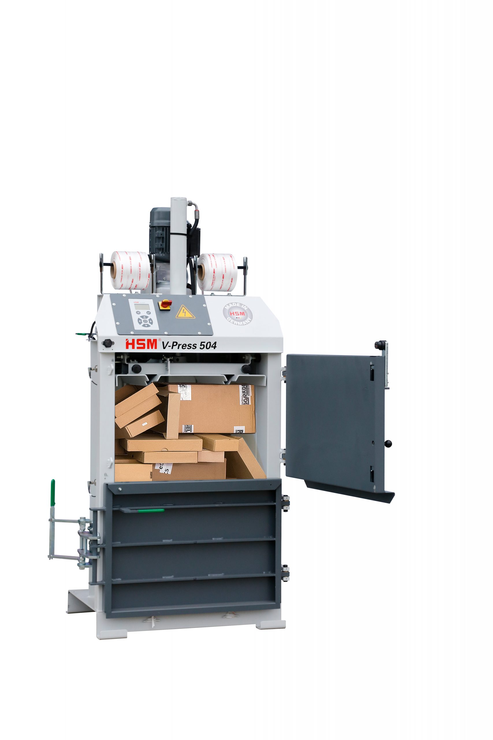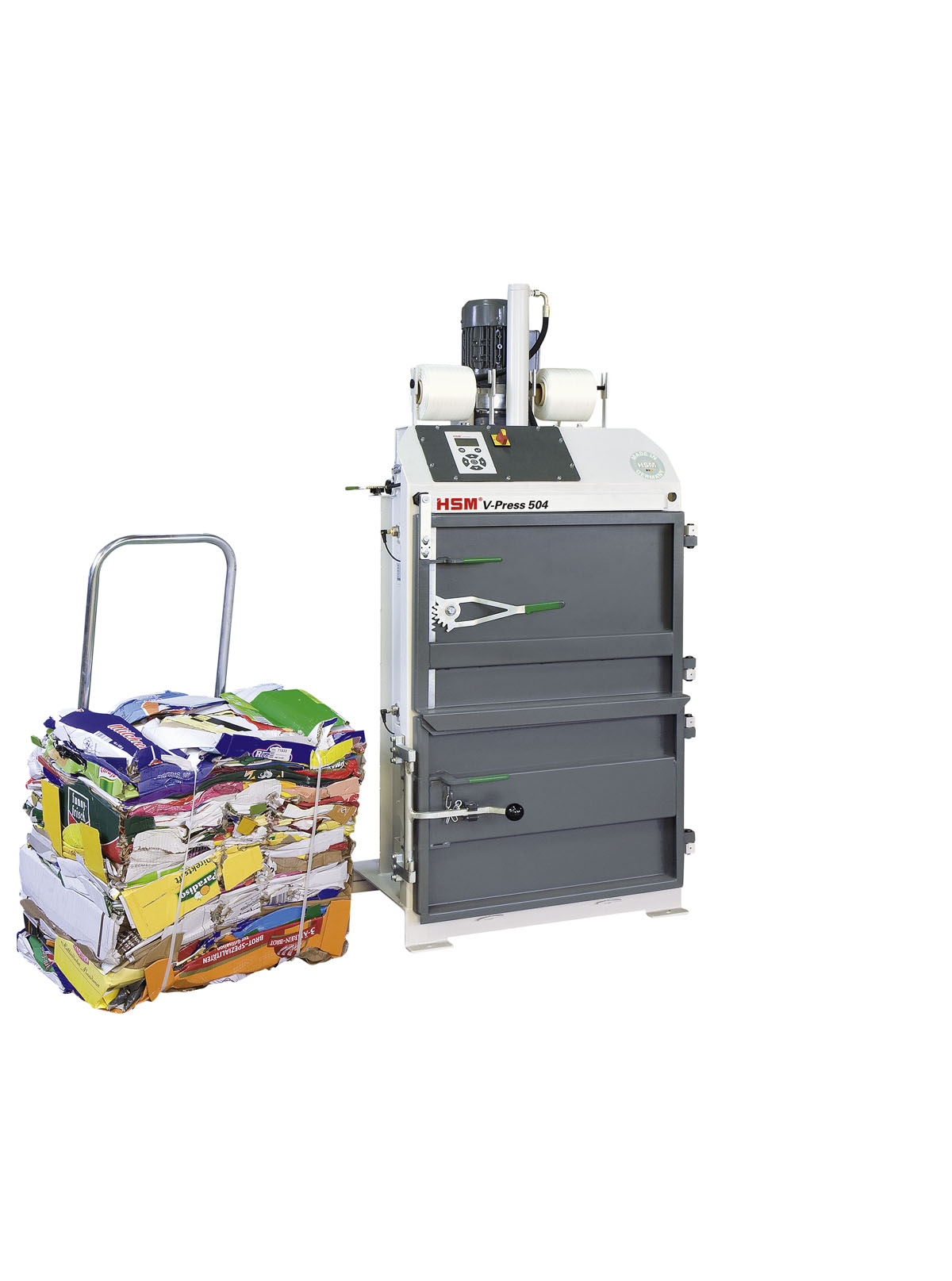 Vuilnispers voor thuis HSM V-Press 504 met baaluitwerper heeft een drukkracht van 4 ton en zal de afvalkosten en ruimtebesparing in uw organisatie aanzienlijk verminderen. Vuilnispers voor thuis wordt veel gebruikt in magazijnen, winkels, hotels, restaurants, fabrikanten uit verschillende industrieën en vanwege zijn kwaliteit en unieke eigenschappen zelfs op stortplaatsen. De perskracht van de vuilnispers voor thuis HSM V-Press 504 met baaluitwerper is 4 ton en kan daarom worden gebruikt om verschillende materialen te persen, zoals plastic, papier, dozen, rekfolieen andere. Het gewicht van de afvalbaal kan tot 60 kg bedragen, afhankelijk van het materiaal dat u samenperst. Wanneer deze materialen worden verdicht, worden de recyclebare materialen extreem gemakkelijk te transporteren. Dit vermindert niet alleen de kosten van het hanteren aanzienlijk, maar het vermindert ook de stress bij het verwijderen van materialen. Als u een grote hoeveelheid afval heeft en u wilt “groener” worden en uw afvalimpact verminderen, dan zijn deze balenpersen een uitstekende keuze.